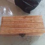 It came with wooden box inside 2 ffabric for the glasses one screwdriver mini ,the sunglasses itself is very good except the nose pads was very close and my nose was up and remove them with my fingers and the problem solved and now fit to mh nose and my face.